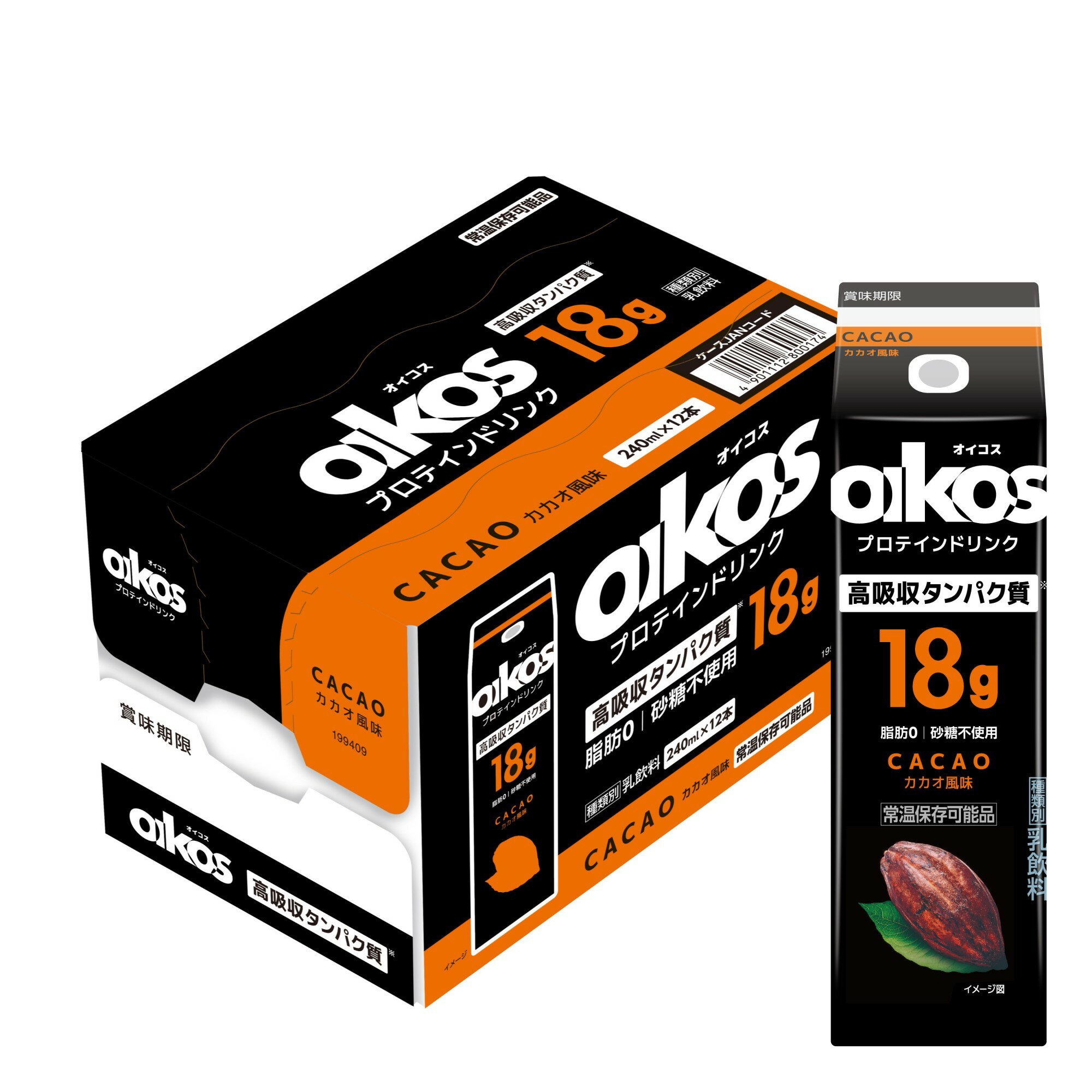 ダノンジャパン オイコス プロテインドリンク 高吸収タンパク質18g CACAO 240ml×12本 送料無料 カカオ 脂肪0 砂糖不使用 常温保存 oikos ロングライフ 飲むオイコス
